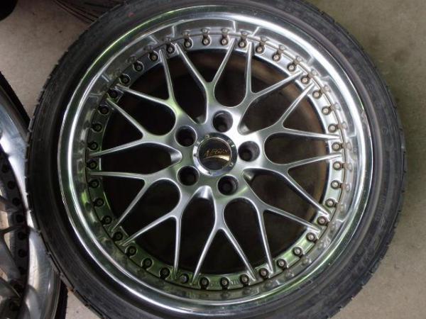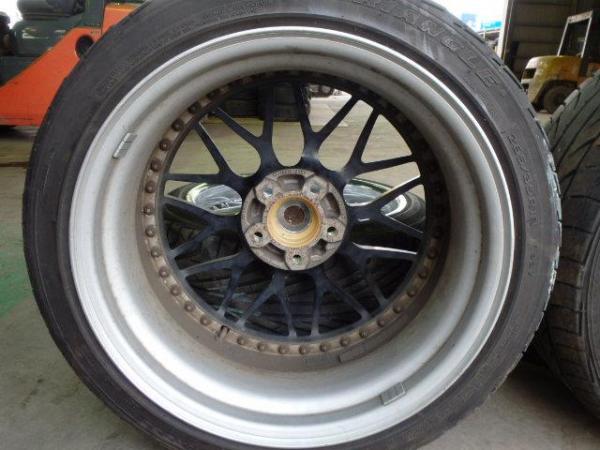 | 商品情報 | グロリア取外し(MY34) BBS風 エンケイ 265/35R18 夏タイヤホイールセット *ホイール* ENKEI AEGIS 日本製 18インチ 9.5JJ 5穴 PCD114.3 オフセット38 ハブ径 約72mm 18インチ 8.5JJ 5穴 PCD114.3 オフセット25 ハブ径 約72mm 裏サビあり ガリキズ多少あり *タイヤ* 265/35R18 TRIANGLE TR968 2011年製1本 2012年製1本 溝5mm~5.5mm 235/40ZR18 ACHILLES ATRSPORTS 2010年製2本 溝3.5mm~4mm 片減りあり(4本) 235/40ZR18の2本は片減りカ所からワレあり | ||