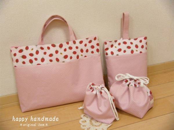 | 商品説明 ハンドメイドのレッスンバッグと上靴入れ、 巾着(お弁当・コップ入れ)の4点セットです。 うさぎちゃんのアップリケがとってもかわいらしいです(#^.^#) お耳はリボンでおめかし…(#^.^#) (アップリケにはウオッシャブルフェルトを使用しています) 入園・入学準備にいかがですか(*^_^*) レッスンバッグ・・内側にポケットが1つあります。 縦約28㎝ 横約40㎝(上部) マチ約3㎝ 上靴入れ・・縦約24.5㎝ 横約22㎝(上部) マチ約5㎝ お弁当袋・・縦約17㎝ 横約17㎝(底部) マチ約10㎝ コップ袋・・縦約17㎝ 横約12.5㎝(底部) マチ約5㎝ レッスンバッグと上靴入れには接着芯を張っています。 小さい子どもが居りますので、発送が遅れる事があるかもしれませんことを ご了承くださる方のご入札をお待ちしております。 支払方法 ◎yahoo!かんたん決済 ◎郵貯 発送方法 ◎定形外郵便(400円)で発送です。 (補償はありません) コメント クレームなし、返品なしの方でお願い致します。 大変心苦しいのですが、新規の方、および「悪い」の評価が3以上ある方は、ご入札前に質問欄よりご連絡いただけますようお願いいたします。 ご連絡いただけなかった場合は、入札の取り消しをさせていただく事がございます。スムーズで気持ちの良いお取引の為に、ご協力お願いいたします。 |