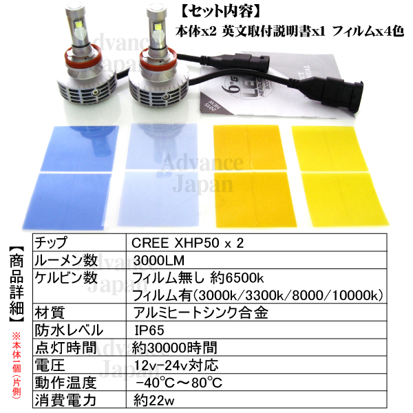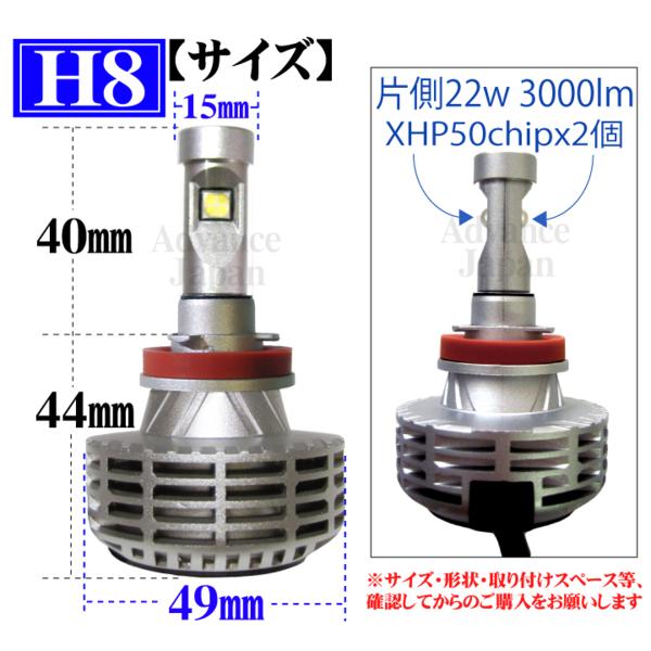 H8 LEDフォグランプ ファンレス 無極性 1年保証 CREE 22w 3000lm