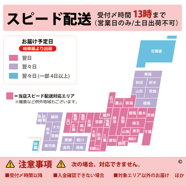 ※土・日・祝日の注文の場合や在庫状況によって、商品のお届けにお時間をいただく場合がございます。