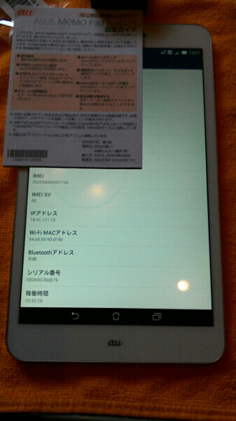 • au ASUS MEMO Pad8 判定〇 ホワイト