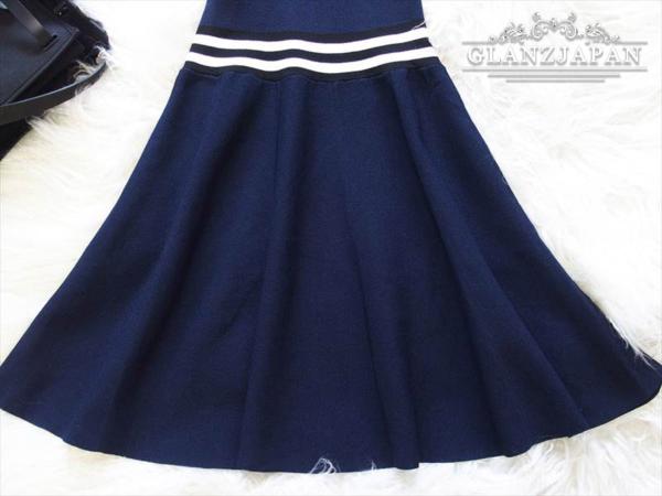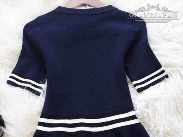 JP09*秋服*9号*紺*ストライプポイント*細見え*ニットワンピース