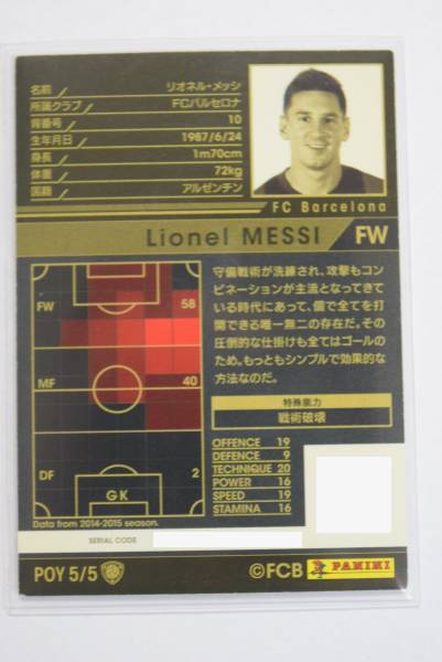 | ※送料・評価・同梱などの注意事項について下記をご確認の上ご入札お願います。 I378)WCCF 15-16 POY リオネル・メッシ 状態:A 入手してからスリーブに入れて保管しています。 内容物は写真に写っている物が全てになります。 当方も中古で入手したため詳細については判りかねます。 予めご理解、ご了承の上ご入札ください。 商品の状態や内容物の有無についてはしっかりと確認しておりますが、見落としがある場合もございます。 中古品・使用品にご理解のある方のみご検討下さい。 不明な点がございましたら、入札前にご質問ください。 | ||||||||||||||||
