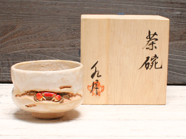 美品 水月焼 蟹彫細工 茶碗 茶器 蟹付き 共箱付き