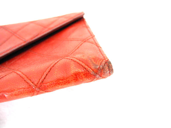 1円 シャネル ダブルステッチ 札入れ レッド AI192
