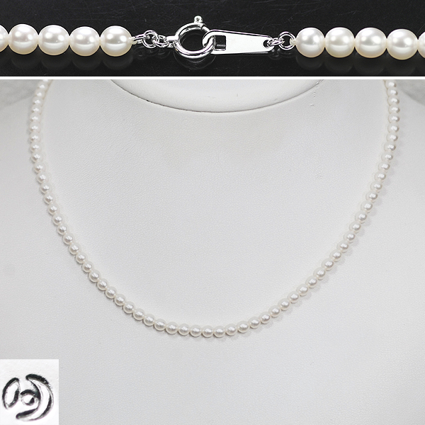 | 田崎真珠の、 K18ホワイトゴールドのパールネックレスです。 約 3.5mm径のアコヤパール(ベビーパール)は、 シルクの光沢を感じるクリーム系の色合いで、 ルーペでもこれといった欠点の気にならない、、 テリのある珠がセレクトされております。 ネックレス本体は、 使いやすい1連デザインです。 珠が小さいので、 さりげなく身につけて頂くことができます。 付属品はありません。 ユーズド品、磨き仕上げ済み。 | ■ネックレス 素材 K18ホワイトゴールド 長さ 約 43cm 重量 約 10.0g ■アコヤパール サイズ 約 3.5mm~3.6mm径 ■その他 付属品 なし ※品質表記については、こちらのページをご覧ください。 商品名 田崎真珠 K18WG アコヤパールネックレス お問い合わせ番号151226-6-258 |