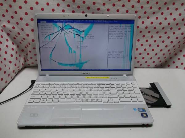 | 液晶 | 液晶画面は 光沢 タイプです。 15.5型ワイド液晶 割れてしまっています。 画像にてご確認ください。 | |