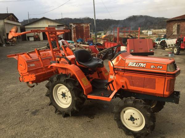 | 商品説明 | 離農のため、譲り受けた商品です。 購入して、数年しか使わず長い間倉庫にて保管してあったものです。 エンジンの調子も良く問題なくまだまだ現役でお使いいただけます。 使用頻度が極端に少ないため、部品交換等の必要も無いので古い機種ですが、 安心してお使いいただけます。 メーカー・・・・・クボタ KUBOTA 型式・・・・・・・B1-14D 駆動・・・・・・・4WD アワーメーター・・29h PTО・・・・・・正転3速 ロータリー・・・・RS1203 馬力・・・・・・・14.5馬力 ロータリー幅1400㎜ 耕うん幅1200㎜ 動作の確認はしましたが、実演までは行えておりません。 付属品は写真が全てです。綺麗な品と思いますが詳細は写真にてご確認下さい、農機具特有のサビ・汚れは多少ございます。 ※商品は倉庫にて保管をしております。 当方、知識が乏しい為、現物確認をオススメします。 気付かない点含めノークレーム、ノーリターンでお願いします。 引取りも歓迎いたします。こちらで配送の手配も可能ですのでご相談下さい。 評価の内容や落札後3日以内のご連絡、7日以内のご入金の無い方は当方にて削除させていただく事もあります。 店頭等にて販売も致しておりますので、入札が有無に係わらずお客様が購入された場合は、オークションの取下げをさせて頂きますので、ご理解・ご了承の程、宜しくお願い致します |