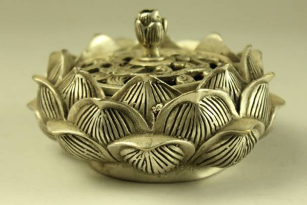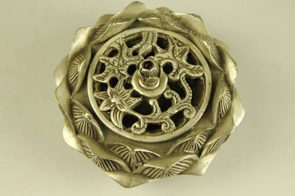 | 【木子】★紋銀細工 蓮造像 アロマ炉 在銘 供奉 仏具★重約350g★O256 | |||