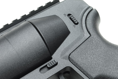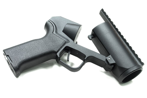 GUARDER(ガーダー)製 ピストルグレネードランチャーです。 各社40mmモスカートに適合します。 ピストルサイズの超コンパクトグレネードランチャーです!20mmレール以外の殆どのパーツがポリマー樹脂製で軽量に仕上がっています。 本体左サイドにセーフティとテイクダウンレバーを配置。中折れ式でパコッとバレルがテイクダウンします。 サイドスイング式に比べ非常にリロードが簡単!モスカートを沢山持っていればメインウェポンにしてもいいくらいですw 軽量コンパクトでガチゲーマーさんでもサイドウェポンに選択できるくらい使えるランチャーに仕上がっていますよ♪スラグ弾対応です!スラグオンリー戦なんかにも是非! ■電動M4用グリップが装着可能! ピストルグリップは電動ガンM4用が使用可能!多数存在するカスタムグリップから好みのグリップを選択可能です。 【製品仕様】 ●重さ:380g ●材質:ポリマー樹脂 ■関連商品