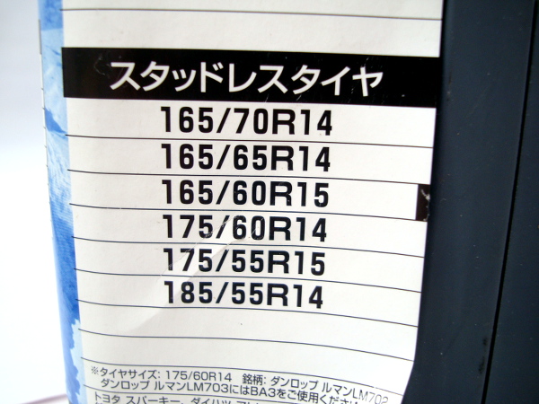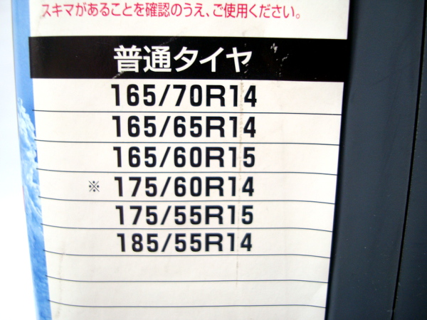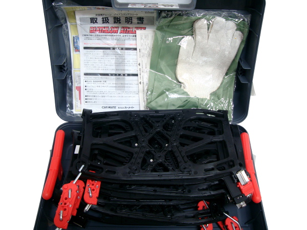 | 【商品名】 カーメイト 非金属タイヤチェーン バイアスロン アスリート BA4 【2011年メーカー生産終了】 【適合サイズ】 ※写真でもご確認ください。 ●ノーマルタイヤ&スタッドレスタイヤ ・185/55R14・175/55R15・165/60R15・165/65R14・165/70R14・175/60R14 ※175/60R14のダンロップルマンLM702には適合しません。 ※165/70R14 ブリヂストン REVO GZ の場合はBA5をご使用下さい。 【商品の状態】 ●未使用♪の商品になります。 ●未使用品ではございますが、保管品になりますので経年による汚れはございます。 ●ケースに、スレ・日焼け・ラベル剥がれが見られます。 ●軍手に汚れが見られます。 ※あくまで中古品になりますので、ご理解・ご納得の上、ご入札下さい。 梱包・配送時に外装フィルム・箱等に多少のスレ・汚れなどがつく場合もございます。 念のため、完璧な商品をお求めの方のご入札はご遠慮ください。 【付属品】 ●バイアスロンアスリート本体(左右ペア) ●取り付けハンドル×2本 ●軍手付き腕カバー(左右ペア) ●取扱説明書 ●取付DVDビデオ ※写真に写っているもので全てになりますので、ご確認お願いします。 ※照明やお使いのモニターの違いにより、色合いに多少の違いがある場合がございます。 | |