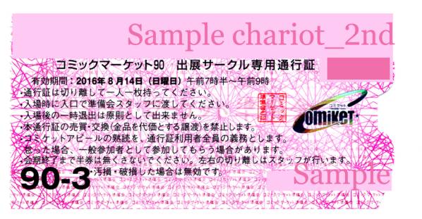 ・この商品の役目は「サークル入場時間帯にご入場頂ける」ということでございます。それ以外、例えばスペースの譲渡等ではございませんので、くれぐれもご注意くださいませ。