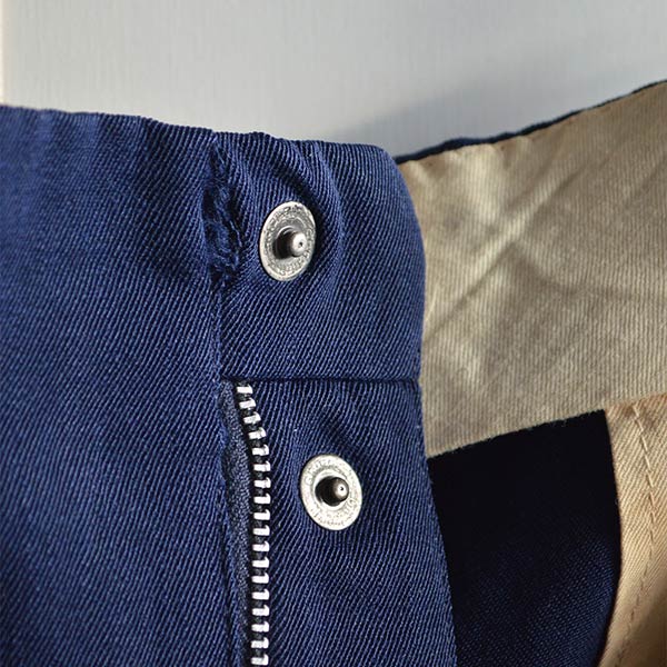 サイドに飾りステッチ入りで、珍しいフロントスナップボタン。