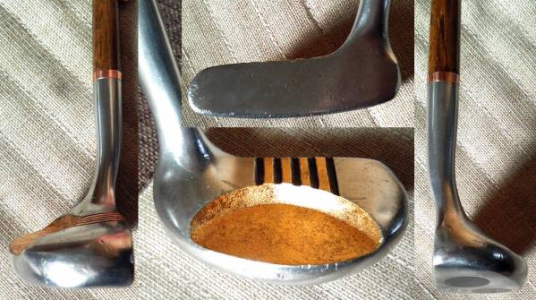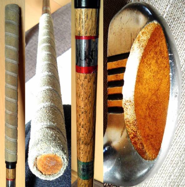 ・素材:金属(素材?)ヘッド+ヒッコリー (Hickory=クルミ科の落葉高木)シャフト。グリップは革巻き。