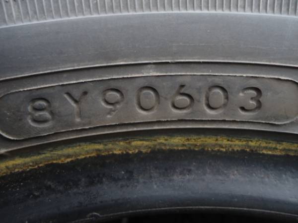 画像にてご確認ください。個人的ではありますが、8~7分山程度あると思います。中古品ですので使用感はありますが、片減りとひび割れはありません。ゴム質は良いです。パンクやビート切れはありません。室内にて保管しております。
