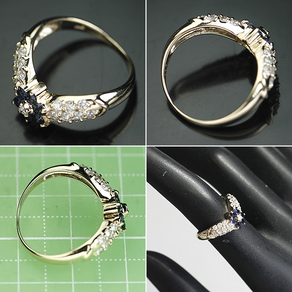 K18イエローゴールド サファイア リングです。 6ピース計0.38ctのサファイアは、深みのある色合いで、 ルーペレベルでも内包物を感じない、テリのある石。 ダイヤモンドは、ルーペレベルで観察すると 表面にカケの確認できる石はありますが、 カラーレス(無色系)で、 肉眼ではインクルージョンの確認が難しい、 輝きのある石がセレクトされています。 リング本体は、 上記のサファイアをセンターにセッティングし、 22ピース計0.40ctのダイヤモンドで取り巻いた、 可愛らしいデザインです。 ユーズド品、磨き仕上げ済み。 最低落札価格設定なしの1円スタート! | ■リング 素材 K18イエローゴールド サイズ 幅約 8.0mm × 厚さ約 4.5mm リングサイズ #10 対応リングサイズ #8~12(サイズ直し無料) 総重量 約 3.2g ■サファイア 重量 6ピース計0.38ct カラー aa クラリティ AAA 輝き AA+ ■ダイヤモンド 重量 22ピース計0.40ct カラー aa クラリティ AA 輝き AA+ ※品質表記については、こちらのページをご覧ください。 商品名 K18 サファイア リング 0.38ct D0.40ct お問い合わせ番号151209-4-005 |