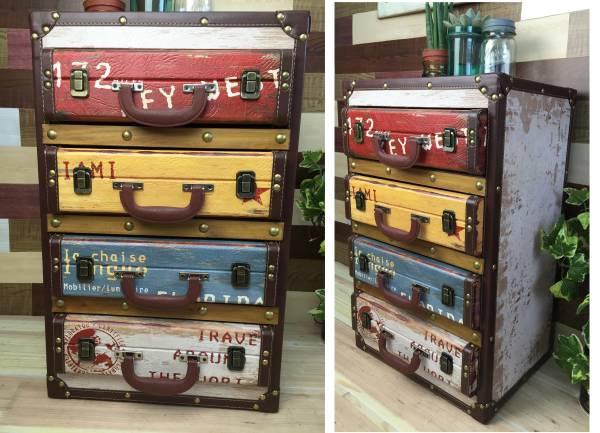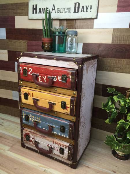 | ◆◇商品詳細◇◆ ビンテージ調ウッドチェストレザー トランクカバン型のおしゃれな木製チェスト4段です。アンティーク仕上げで高級感溢れるレザー張りデザインです。引き出し部分はサイドにスライド金具付きで開け閉めがスムーズで使いやすいお品です。所々の塗装剥げ模様がリアルに作られていて、ヴィンテージ感たっぷりな男前商品ですよ。ショップのディスプレイ台やアメリカンインテリアやアジアンテイストにもよく合います。小物収納にはもちろん飾るだけでおしゃれな雰囲気のあるお部屋を演出します。ショップのディスプレイなどには存在感抜群で人目を引く一品です。小物を飾ったり、キッチン収納、ダイニング収納とマルチに活躍しますよ!!お部屋に置くだけで抜け感間違いなし!なかなか近くの家具屋さんにはお取り扱いが無い商品です。人気男前家具が今だけ送料無料のこの価格!他では買えない商品をぜひこの機会に♪ 【商品状態説明】 美品。アンティーク調のデザインですので塗装剥げ風、古木風をお楽しみいただけます。 【サイズ】 横幅:40.5㎝ 奥行:31.5cm 高さ:63.5㎝ 引き出し内寸32×26×9(一個分) 【素材】 ウッド 合成レザー 【カラー】 ------ 【完品参考価格】 ¥29800 | ◆◇支払・発送方法◇◆ ・銀行振込 ・ゆうちょ銀行 ・ヤフーかんたん決済 ・代金引換 注)代金引換をご希望の場合、別途代金引換手数料が430円かかります。 ●送料は基本無料ですが、沖縄・離島などにお住まいの方はご負担ください。 (沖縄・離島の方はメールにてご連絡いただければ、送料をお知らせいたします。) ●ヤマト運輸・佐川急便・第一貨物のいずれかにて配送いたします。 (運送会社の指定はできません。ご了承ください。) ●日時・時間指定のある方や、お問い合わせ(追跡)番号をご希望の方は取引連絡の際にお知らせください。 | |