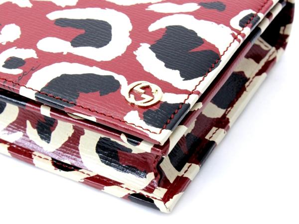 14万新品◆グッチ◆GUCCI 赤系アニマル柄チェーンクラッチバッグ