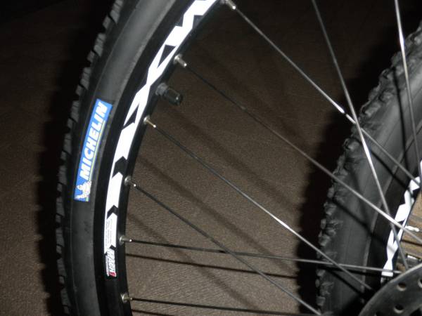 タイヤなど付いている状態なので、重量は不明ですが、持った感じはMTBホイールとしては軽いように感じます。