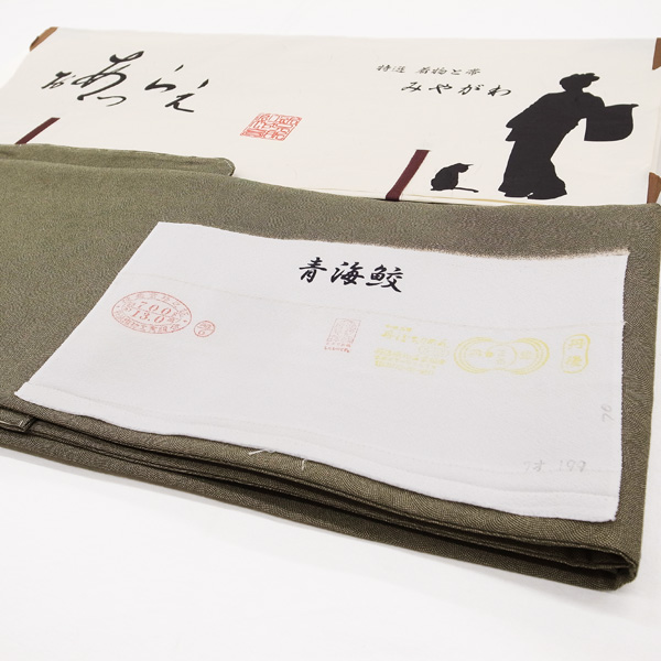 ◆みやがわ e17.丹後ちりめん オリーブグリーン 江戸小紋 鮫 (M)