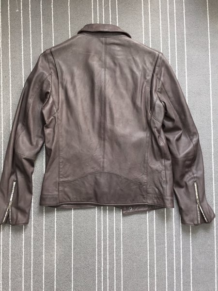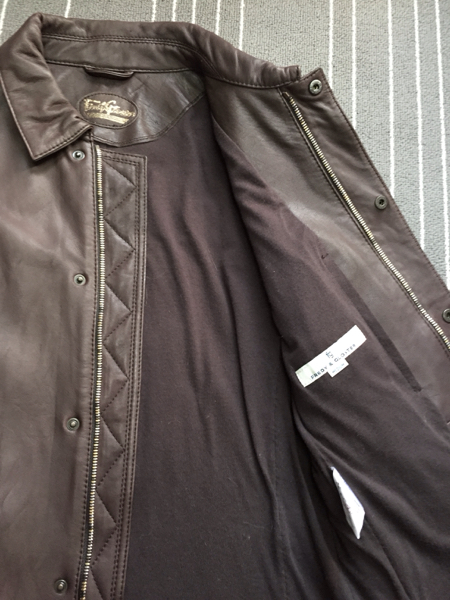 タイトめなシルエット、ソフトで着心地の良いレザーが特徴。背中肩のタックが深く取ってあり、手の動きもとてもスムーズです。