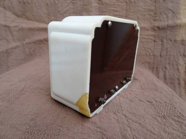 サイズは、11.5x5x9(高さ)cmと、とても小さく、外観は超小型の真空管ラジオのように見えます。Ivarekという文字があるので、そんな名前のメーカーが製造した鉱石ラジオなのでしょうか。