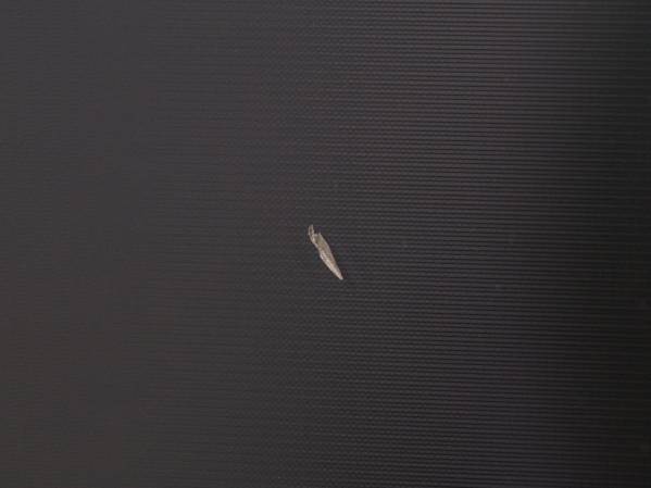 キレイに使ってきましたが、今回出品するにあたり、細かく点検しているときに気がついたのですが、画面上に長さ5mmほどのキズがあります(写真の赤丸で囲った箇所)。もちろん、そのキズに起因するドット欠け的なものもありませんし、映像は正常に表示されていますので、一番表面の保護ガラス部分にキズがついているようです。
