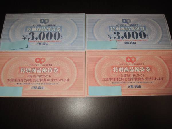 洋服の青山 3000円分商品割券+特別商品優待券2セットです。